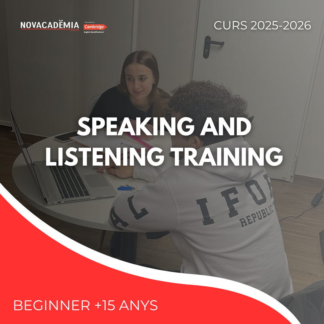 - Aquest curs es centra completament en el desenvolupament de les habilitats: Listening i Speaking, així com l’entrenament per entendre accents diferents de l’anglès.